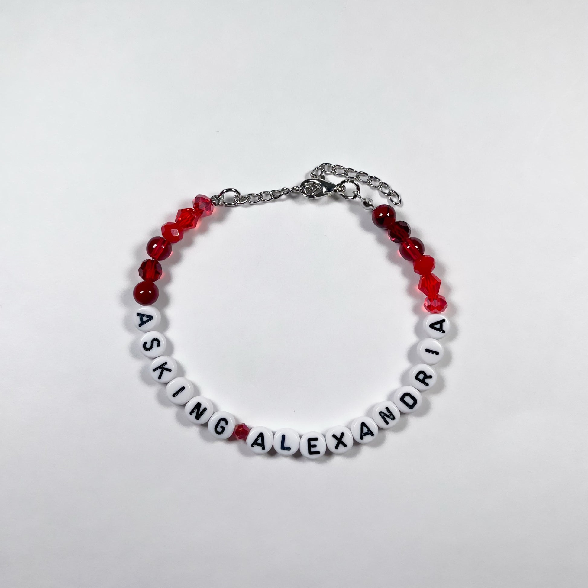 Made with: glass beads, and plastic letter beads on a stainless steel wire with a 4cm stainless steel adjustable chain.
